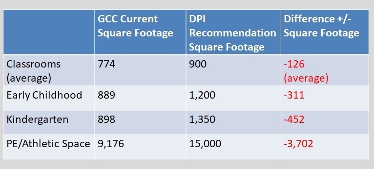 Yes, the North Dakota Department of Instruction has recommendations based on enrollment and those are listed below along with the current space GCC has available.