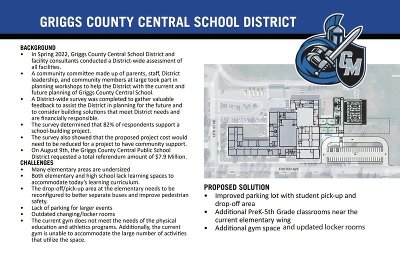 School referendum vote will be tomorrow (Tuesday, September 26) from 9am-7pm at Griggs County Central School in the library. Go through the main doors (Door #1) to get to the library. You need a valid ID with current address to vote and you must live in the Griggs County Central School District.